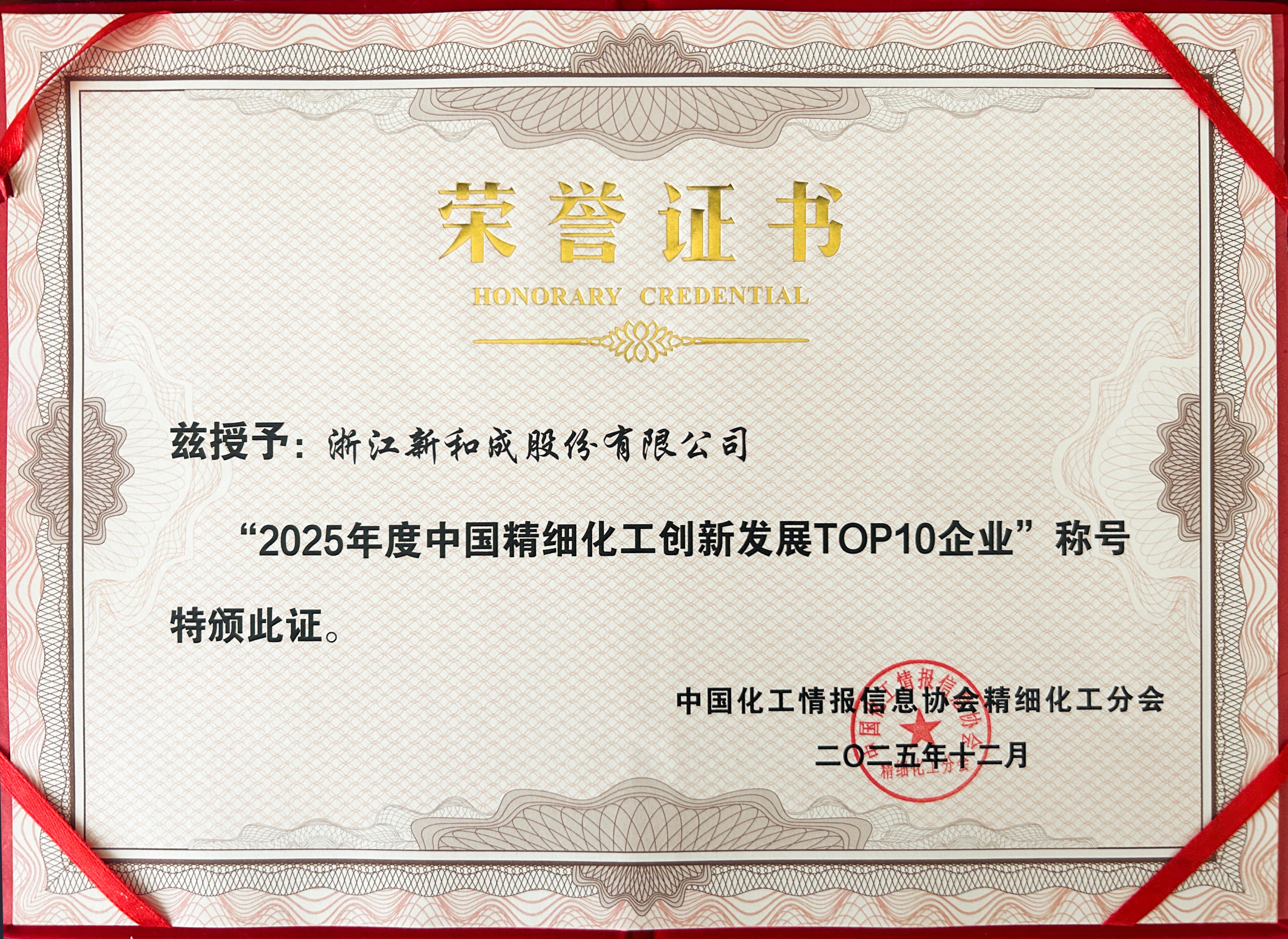 NHU claimed the top position in both the 2025 China Top 100 Fine Chemical Companies and the 2025 China Top 10 Fine Chemical Innovation and Development Companies. This double recognition affirms NHU¡¯s overall industry leadership and highlights our strengths in management, innovation, and green development.